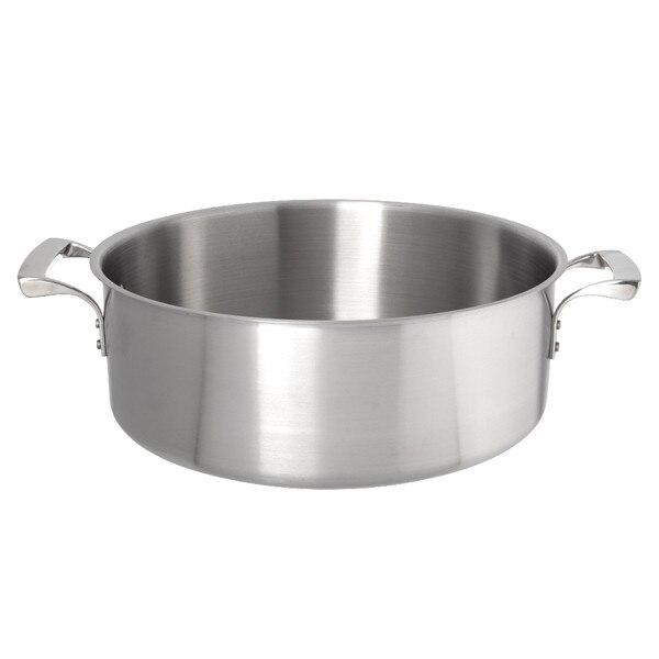 The Browne 5724014 Thermalloy Brazier is a versatile tool for bulk or large volume cooking. Constructed of heavy-duty stainless steel with a 15 quart capacity the Browne 5724014 Thermalloy Brazier has a 6 millimeter aluminum sandwich bottom and has induction capabilities. The Browne 5724014 Thermalloy Brazier has over sized handles for easy gripping that securely fastened with 4 rivets. With a durable design the Browne 5724014 Thermalloy Brazier will not warp or get misshaped even with heavy commercial use, ideal for all food preparation.