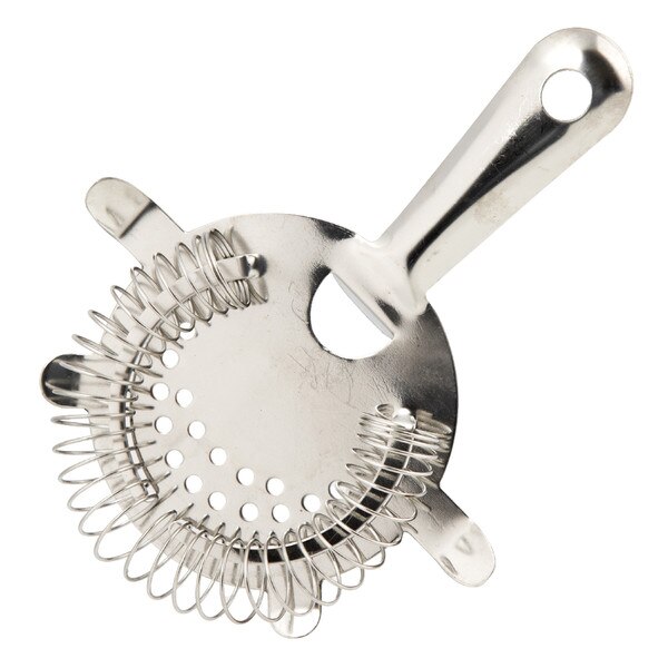 Strain martinis to cosmos with the Browne 57507 Cocktail Strainer . Made with stainless steel the Browne 57507 Cocktail Strainer has 4 ears to prevent slipping while draining cocktails through glasses or shakers of ice. The Browne 57507 Cocktail Strainer is ideal to strain drinks anywhere from home to bar use.