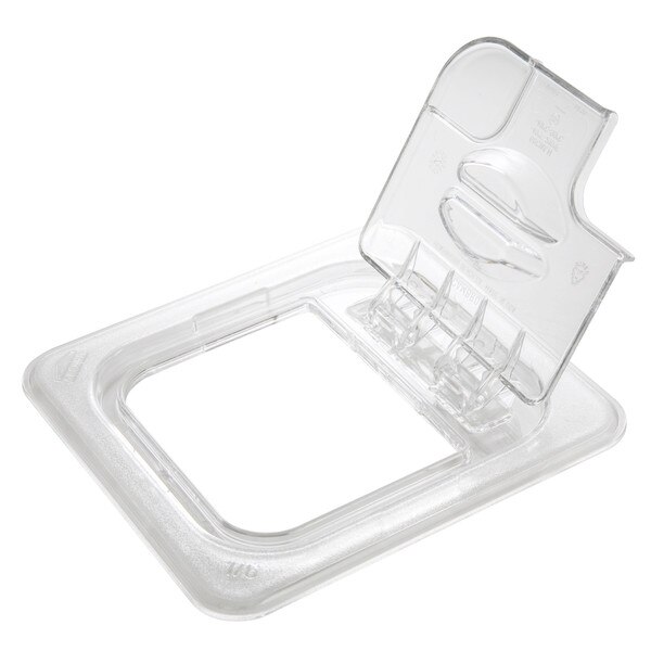 Use this Cambro 60CWLN135 Camwear Polycarbonate lid to cover the contents of a 1/6 size Camwear food pan to hold its temperature and protect from cross contamination. This Camwear clear polycarbonate cover is notched to accommodate a serving utensil. The FlipLid easily flips up to access content while helping to ensure food stays covered when not needed.