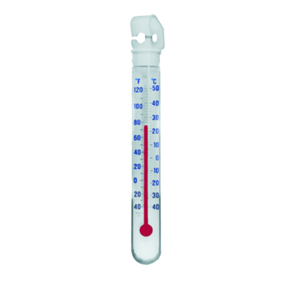 Always keep your walk-ins at optimum temperatures with this Franklin Machine Products 138-1218 Hanging Refrigerator Thermometer. With a temperature range of -40 to 120F the Machine Products 138-1218 Hanging Refrigerator Thermometer is glass-red spirit filled to be non-toxic with "safe zone" printed on the scale and has a high-density polyethylene hanger that is ideal for wire rack or glass shelves. Great for any refrigerator or freezer the Machine Products 138-1218 Hanging Refrigerator Thermometer is ideal for professional or home use.