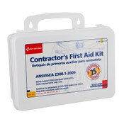 Offset minor emergencies and keep employees and customers safe with a first aid kit. Restaurants and other workplaces are required by OSHA to keep a number of first aid supplies on-hand at all times to tend to cuts, scrapes and burns in the kitchen. A first aid kit includes all of those supplies packed neatly in a convenient carrying case that may be wall mountable. Get a first aid kit to take care of your staff and customers.