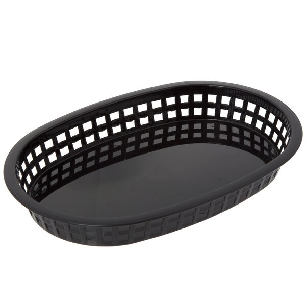 The Tablecraft 1076BK Food Basket makes the perfect presentation piece a variety of items. Made of a durable black, plastic material in an oval shape the Tablecraft 1076BK Food Basket measures 10-1/2 x 7 x 1-1/2 inches with a lace design and is dishwasher safe. Sure to compliment any decor the Tablecraft 1076BK Food Basket works well in concession stands, restaurants, and many other food venues for convenient service.