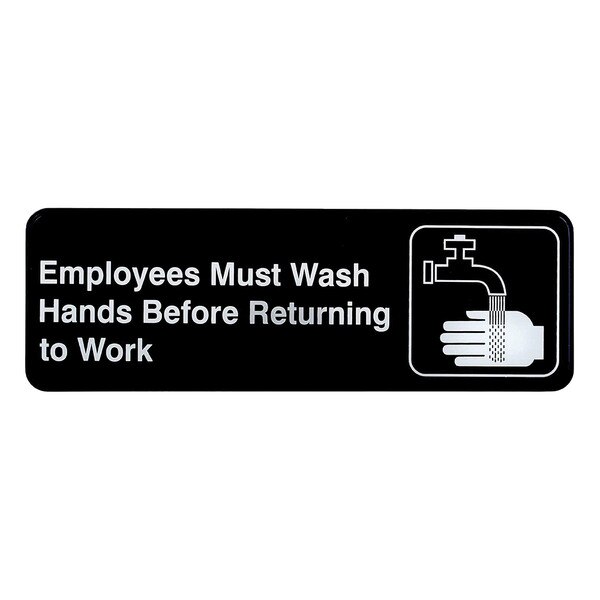 Employees Must Wash Hands Sign - 3" x 9" SKU: TBL394530 $2.95 Quantity discounts available QuantityPrice (0)No Reviews yet Ship 104 Available Pickup in Store - FREE! Select Store to check availability. Quantity -+ Add to Shopping Cart DetailsDetailsSign, 3" x 9", "Employees Must Wash Hands Before Returning to Work", white on black, pressure sensitive adhesive backing Reviews 0 Back Ratings & ReviewsNo reviews availableBe the first to Write a Review