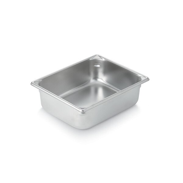 The Vollrath Super Pan V Half-Size Steam Table Pan (30242) is a food pan that is comfortable to work with, stands up to the daily abuse of commercial foodservice and puts forth a beautiful presentation. Vollrath's Super Pan V food pans are designed with built-in concave, diagonally tapered corners for high impact resistance. This corner design also acts as a pouring spot for clean, mess-less pouring from the pan into another pan or food storage container. The Super Pan V will save you and your kitchen staff time and frustration thanks to their anti-jamming design. The food pans easily stack on top of each other when you need to store them and no more struggling to pull the pans apart when you're ready to use them. When you're working with steam pans for hours on end, your fingers often start to ache from the sharp edges digging into your hands. But, the Vollrath Super Pan V Hotel Pan has a solution for that, too! Vollrath Super Pan V Steam Table Pans feature polished and flattened edges, making it more comfortable to work with them. With all these convenient functions plus a beautiful, bright finish for elegant presentation, you can count on happy patrons and a happy staff with the Vollrath Super Pan V Half-Size Food Pan (30242).